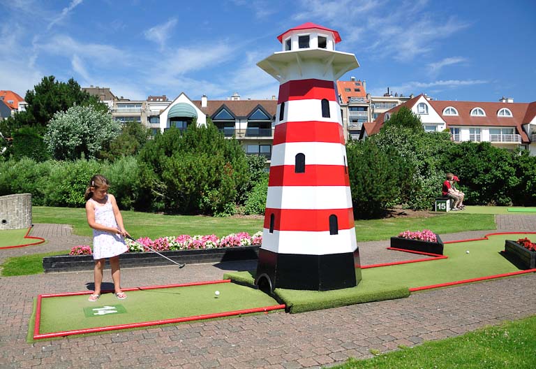 Tijdens het minigolfen kunt u genieten van ons prachtig domein en het uitzicht. Een unieke locatie, bekend om zijn oase van groen en bloemen. Gelegen op een steenworp van het strand of ideaal te combineren met een bezoekje aan het Zwin.